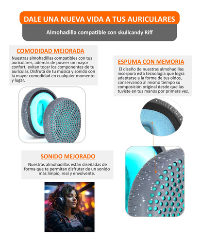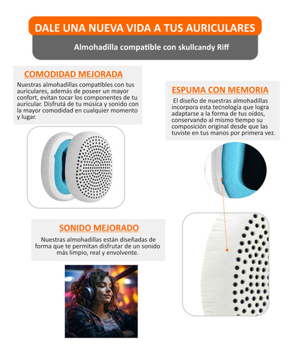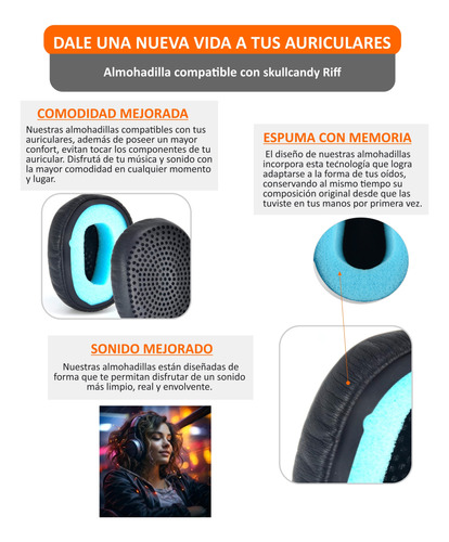 Almohadillas Para Skullcandy Riff Cuerina Repuesto
