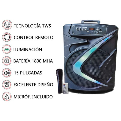 Parlante Bluetooth Rgb Grande Con Control Y Micrófono Tm1505